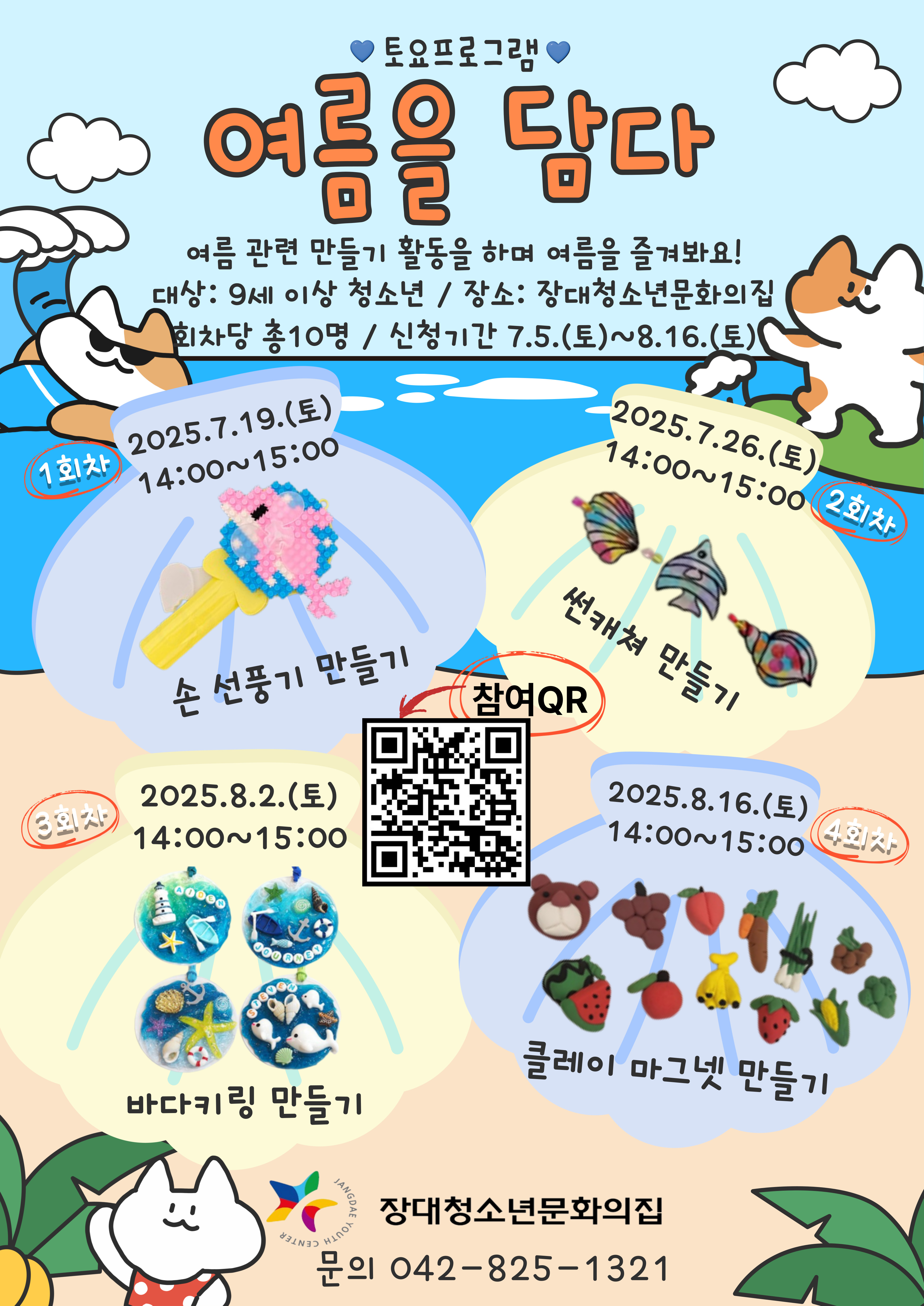 일시: 2025/7/19 ~ 2025/8/16 매주 토요일 (총 4회) 오후 2시 ~ 3시