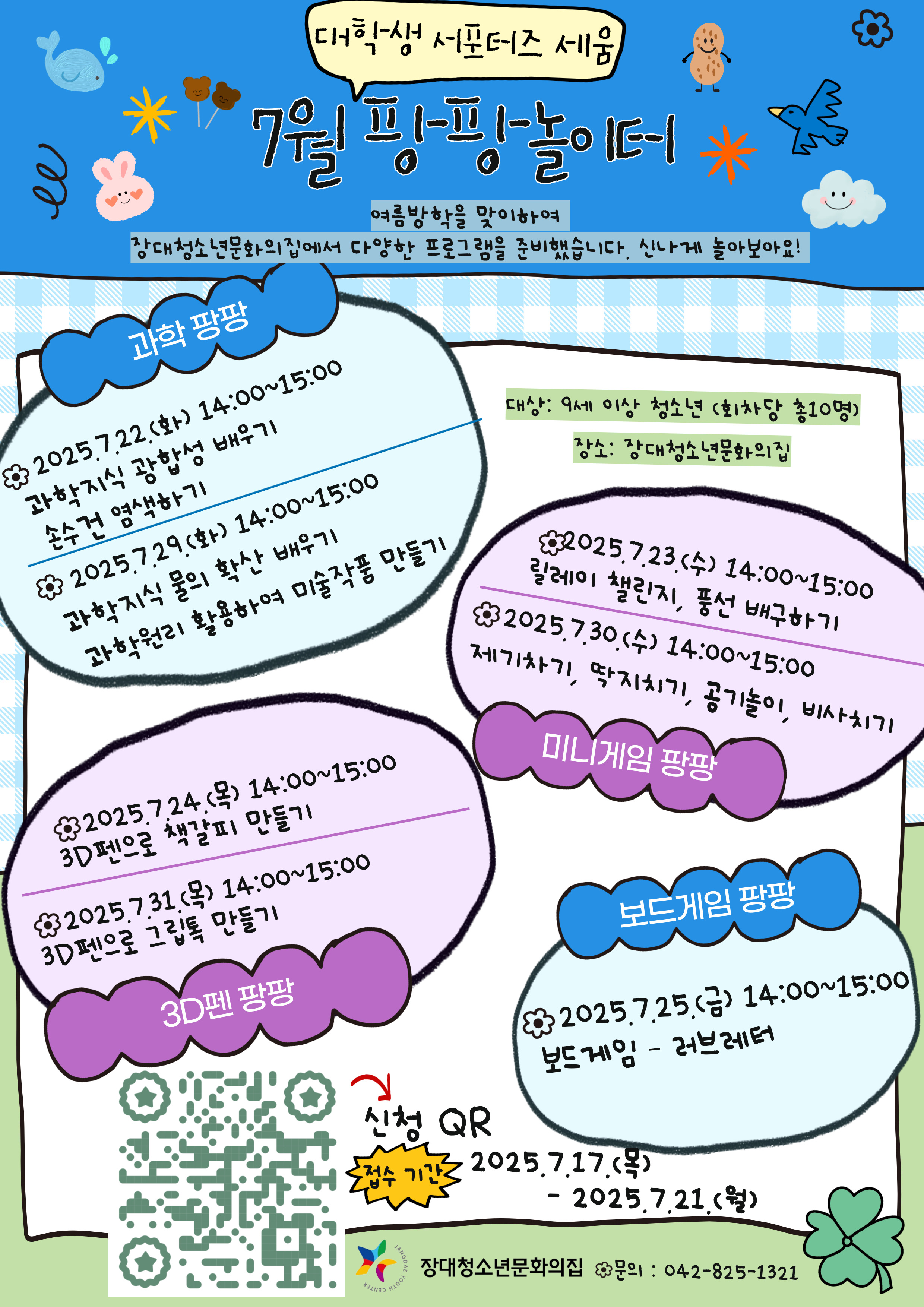 일시: 2025/7/22 ~ 2025/7/25 (총 4회) 오후 2시 ~ 3시